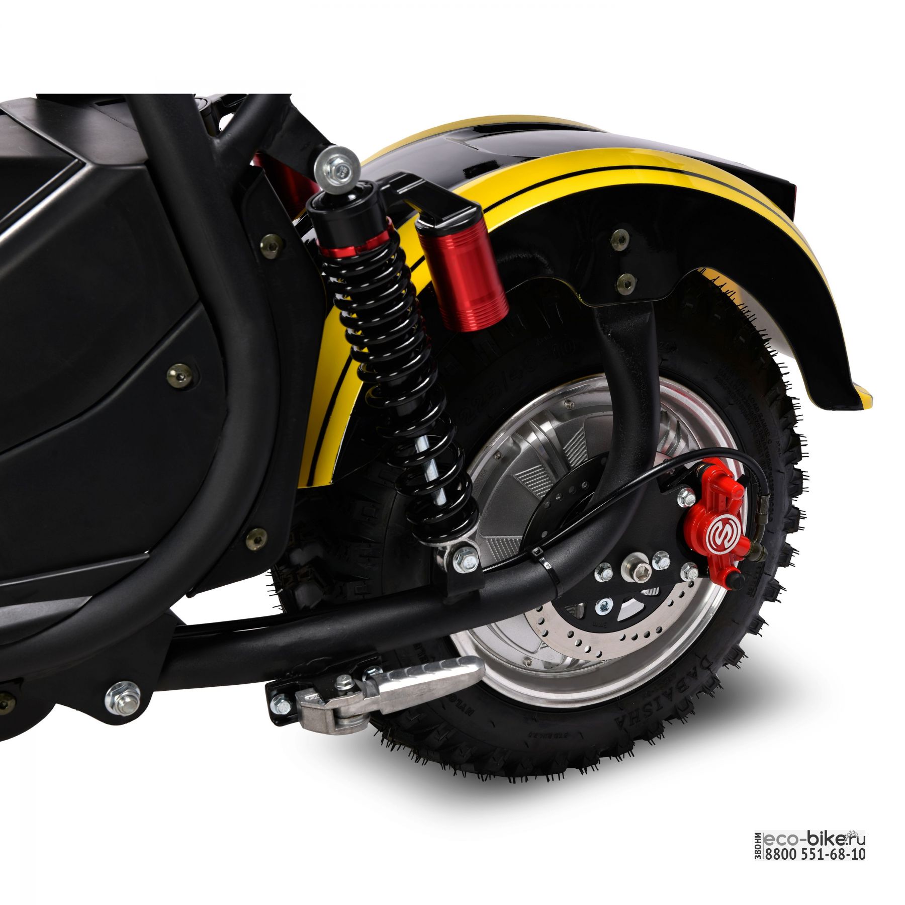 - шоссейная резина на 10-дюймовых колесах с низким профилем позволяет круглогодично использовать скутер и без проблем передвигаться по бездорожью и пересеченной местности;